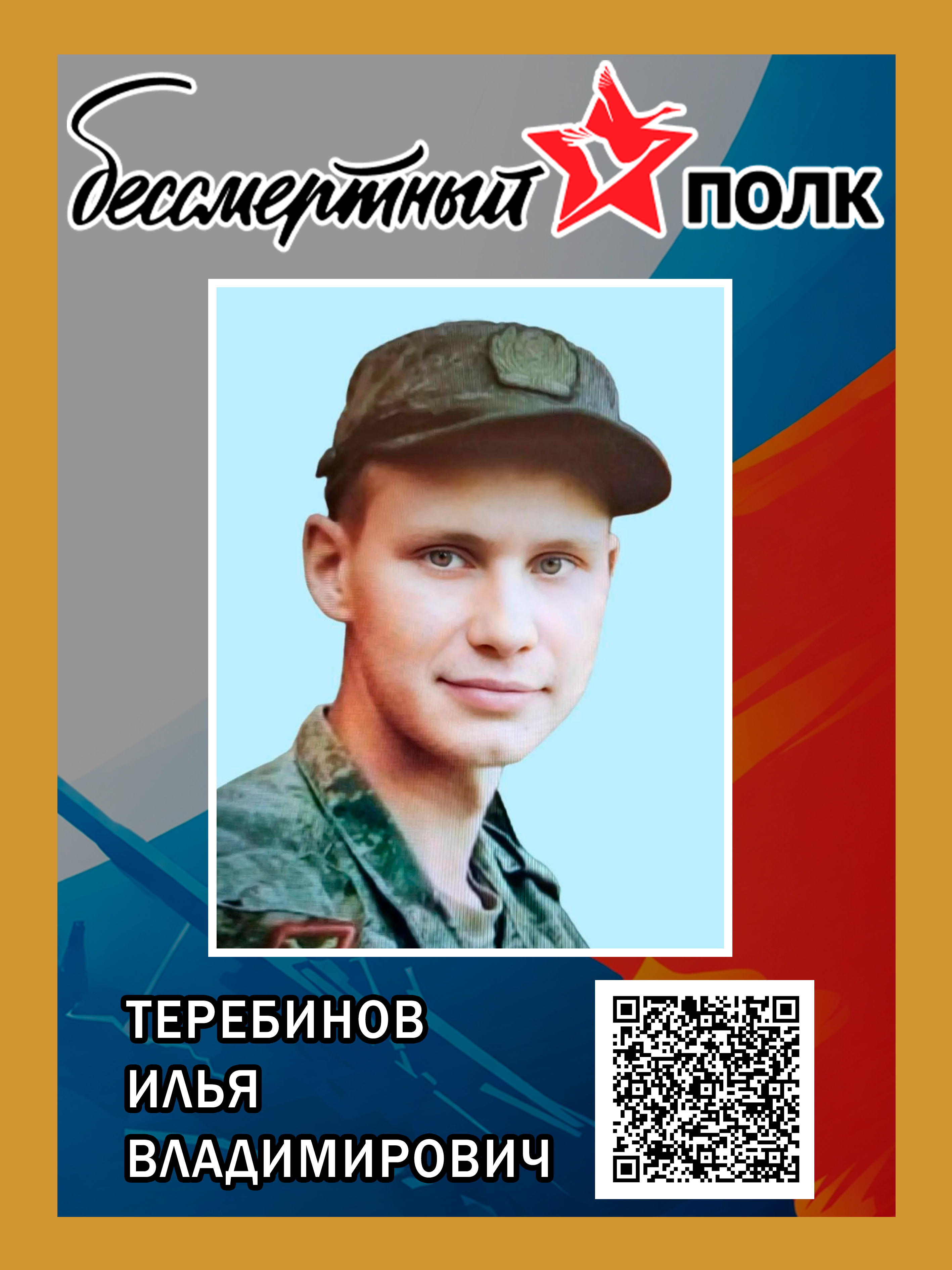 17 июля 2024 года гвардии рядовой Теребинов Илья Владимирович героически погиб в районе населенного пункта Дружба Артемовский район (Бахмутский район) Донецкой Народной Республики во время штурмовых действий, защищая свою Родину.